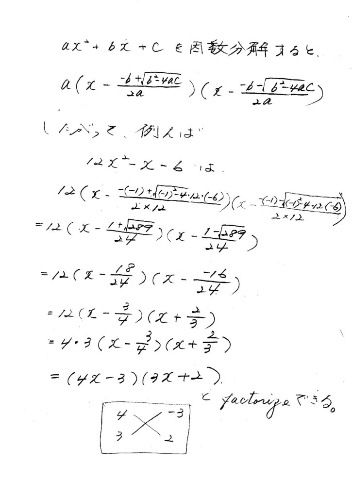 $3x^2-x-1$は因数分解できないので、$3x^2-x-1=0$の解は解の公式を使い、