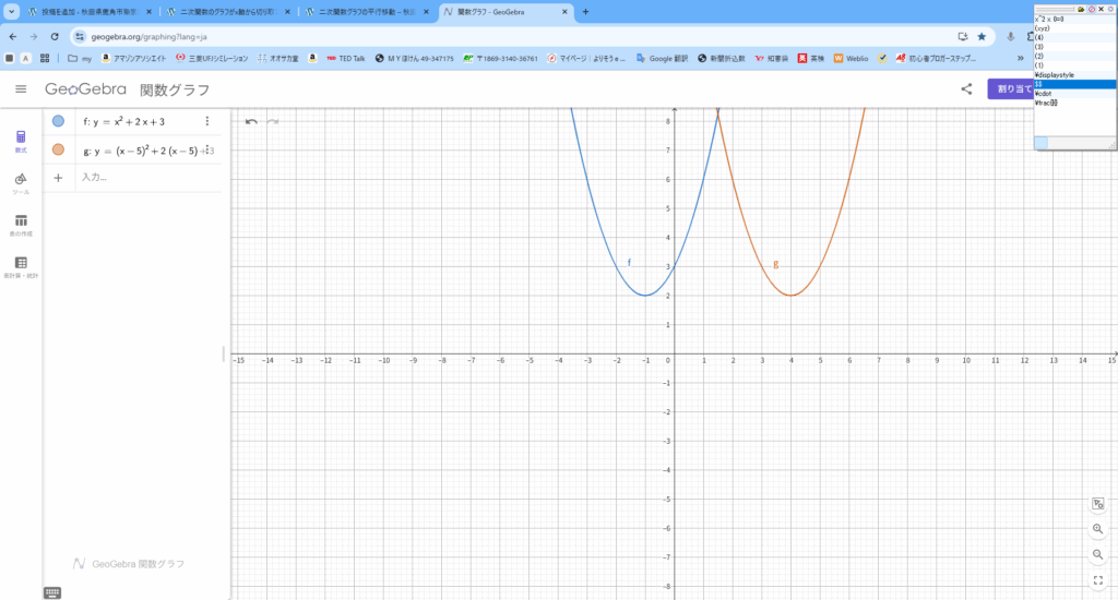 $例えば、f(x)上の点(0,3)はx軸方向へ5平行移動したものであるから$